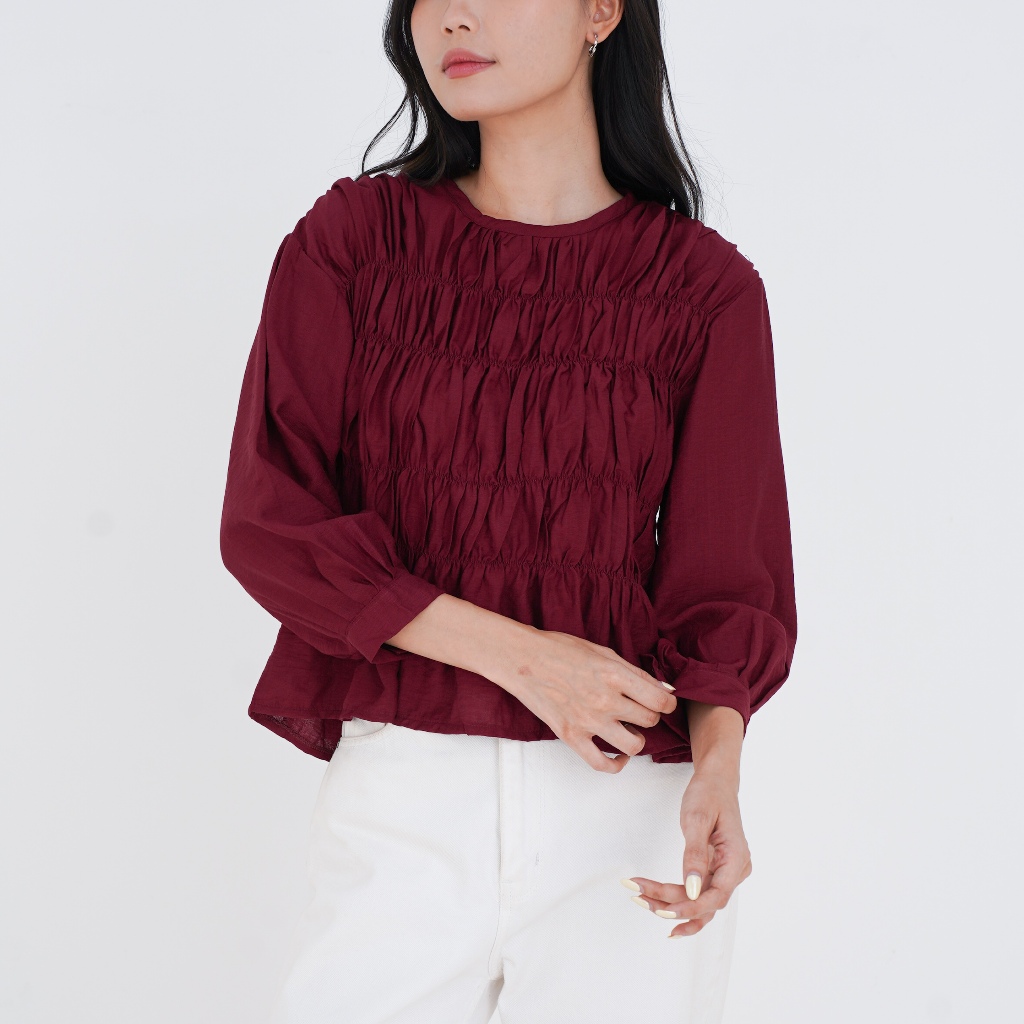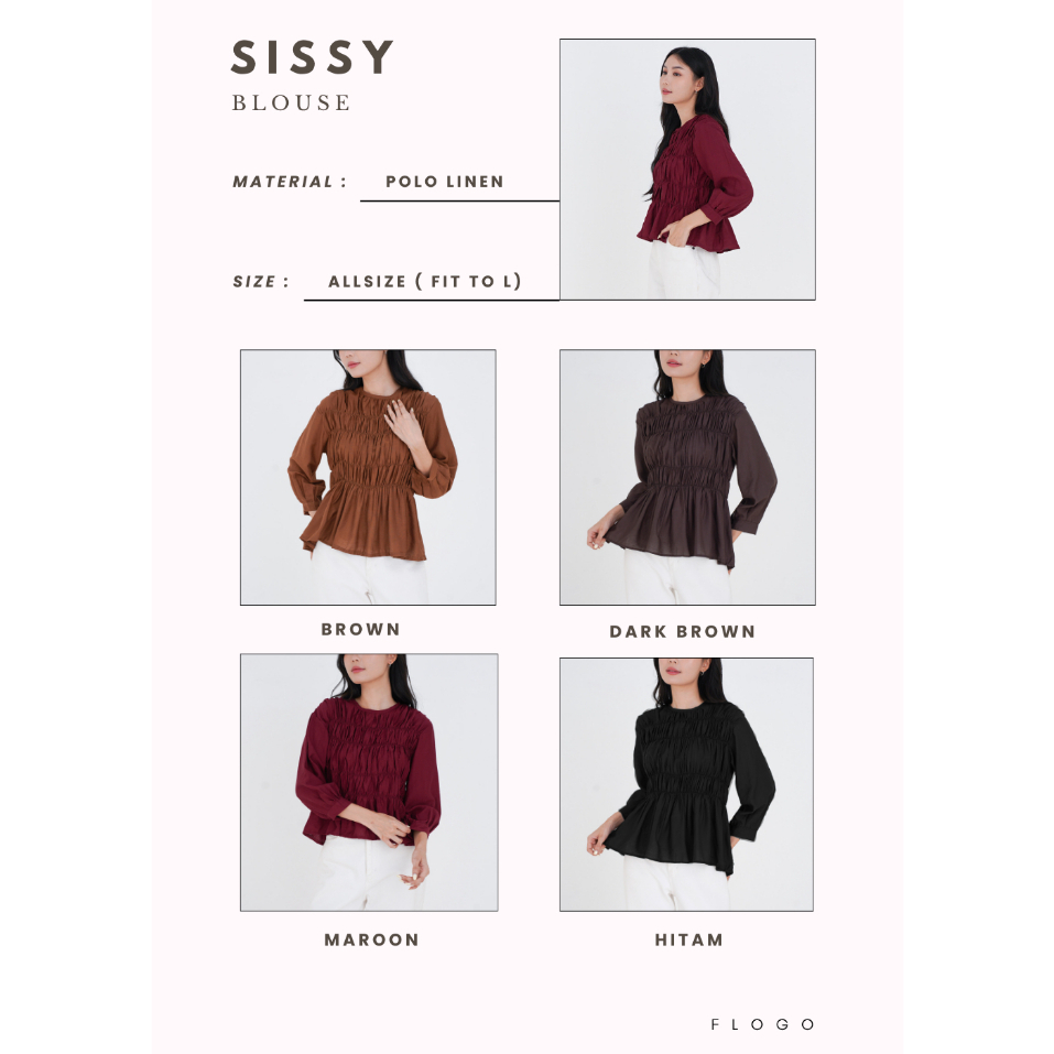 Atasan Wanita Kekinian Kemeja Lengan Panjang Terbaru Top Blouse Kerut Dada Pololinen Impor Premium Sissy Murah Gratis On
