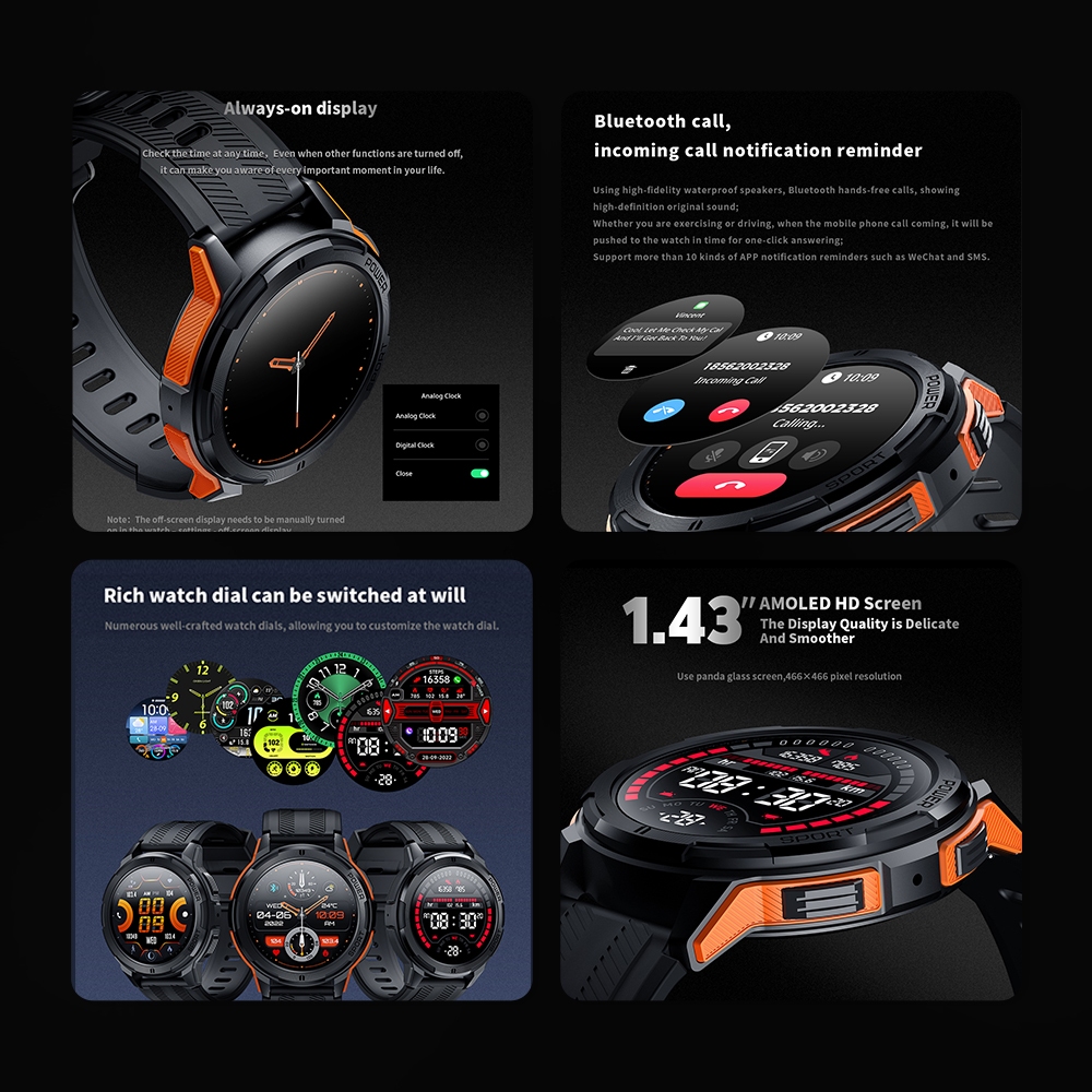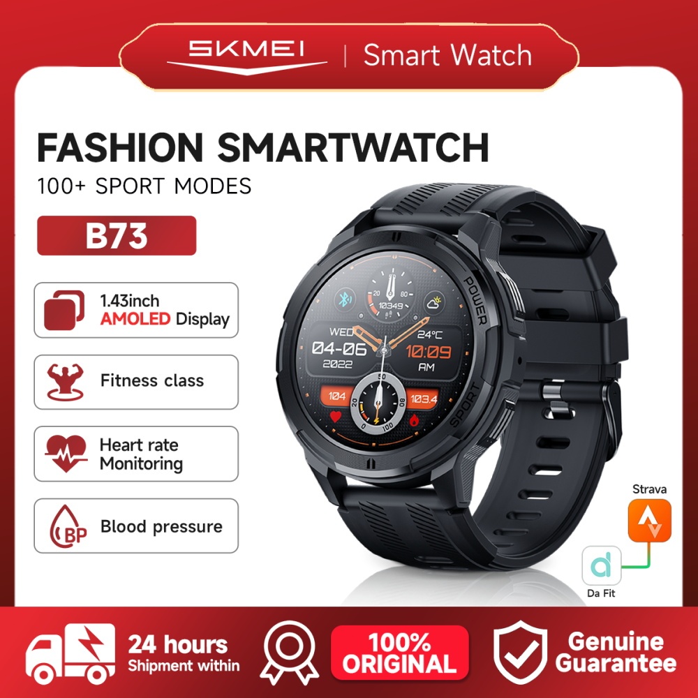 Skmei B73 1.43-inch Amoled jam tangan smartwatch pria olahraga watch anti air 1ATM android ios jam tangan pintar