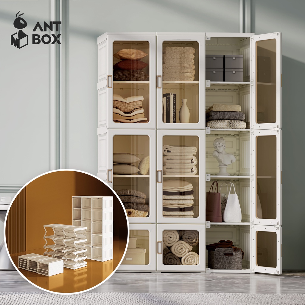 ANTBOX Lemari Baju Keluarga Desain Minimalis Muat Banyak Hemat Tempat Lemari Lipat Multifungsi