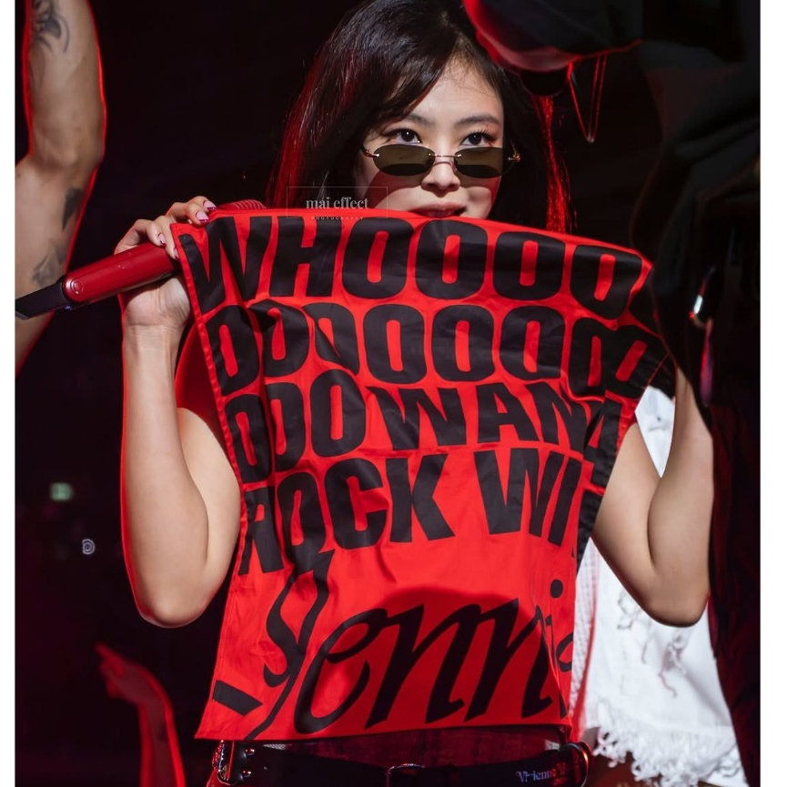 BAN Ban WHOOOOOOOO WANNA ROCK WITH JENNIE Ukuran 53CM X 53CM Merah Syal