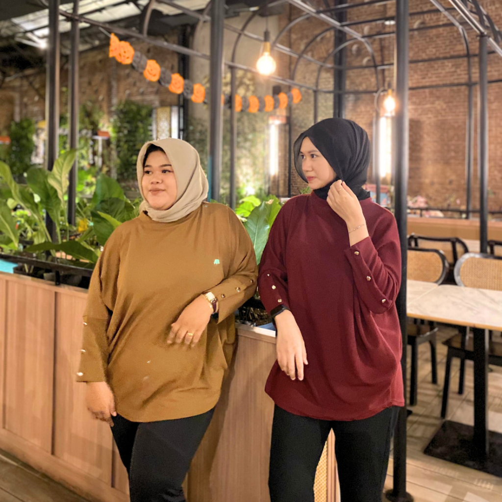 Blouse Wanita Jumbo Oversize Lengan Panjang Polos Rajut Knit, Atasan Batwing Bigsize Nyaman,Terbaru Murah Gratis Ongkir