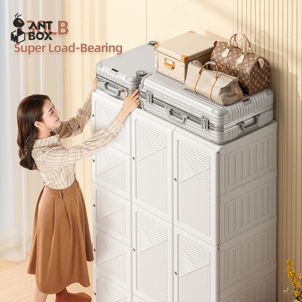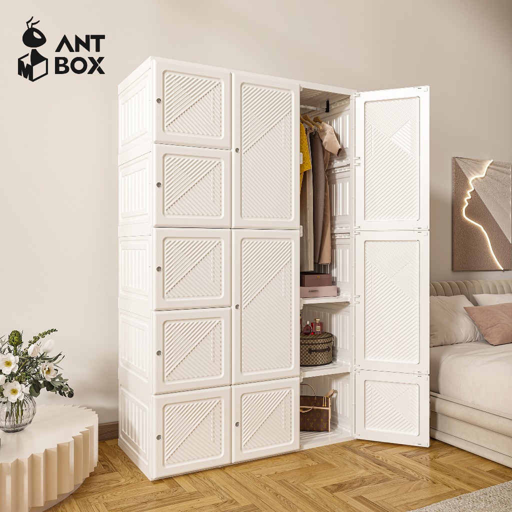 ANTBOX Lemari Pakaian Putih 15 Box 2 Gantungan Baju Lemari Baju Lipat Minimalis Bebas Instalasi