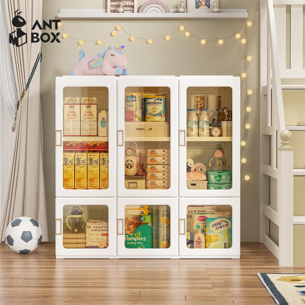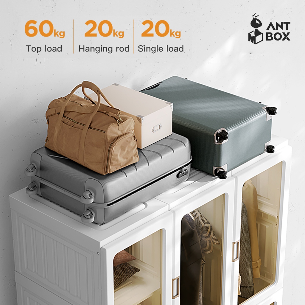 ANTBOX Lemari Baju Transparan 9 Box 1 Gantungan 540L Lemari Baju Plastik Tebal Wardrobe Transparan