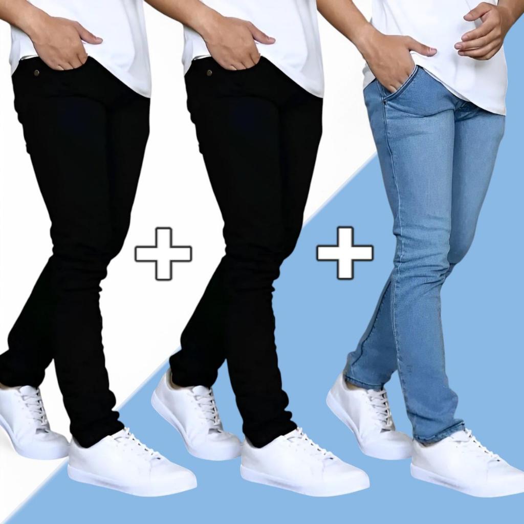 (PAKET HEMAT) Beli 2 Gratis 1 Pcs / Bisa / Bayar Di Tempat / Celana Jeans Pria Slim Fit / Celana Jin Cowok Pensil / Celana Jeans Panjang Pria / Celana Panjang Laki-laki / Bahan Melar