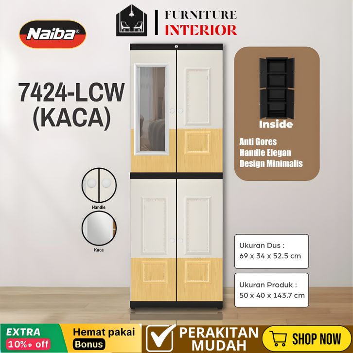 Lemari Pakaian Plastik NAIBA Nandos Fit Lemari Susun Long Door Cabinet (Instant)