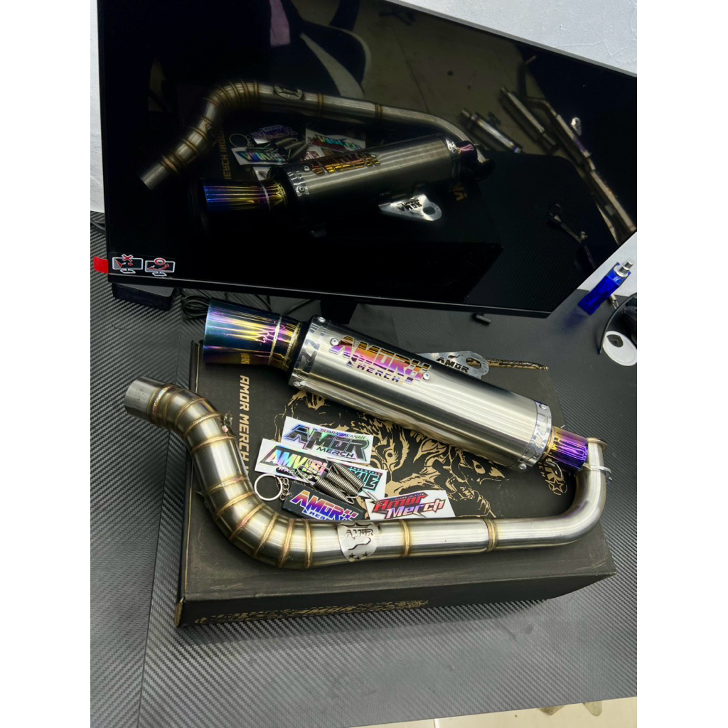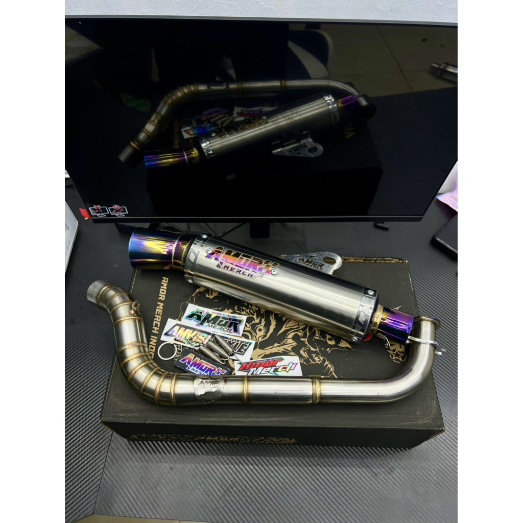 (Grade A) Knalpot Amor Merch Tipe Amviby Style Golden Blue V2 Racing