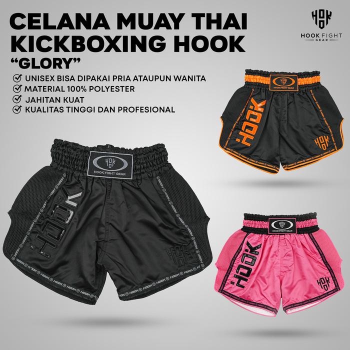 CELANA MUAY THAI HOOK FIGHT GEAR, MUAY THAI SHORT HOOK CTH011 - GLORY-BLACK, L