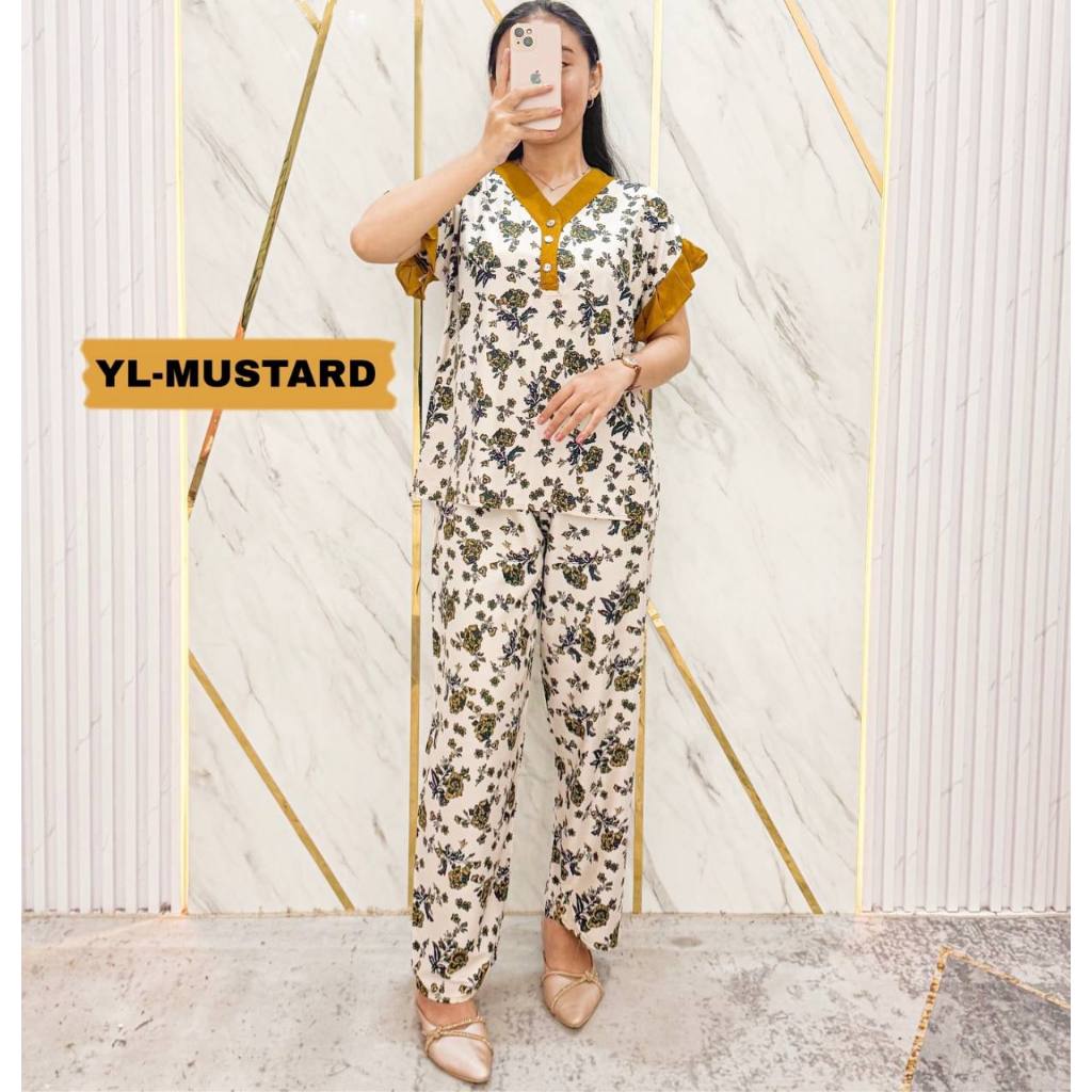 Alizta Setelan Yola Oneset Rayon Kancing Depan Busui Motif Batik Pekalongan Adem Atasan Celana Murah Gratis Ongkir