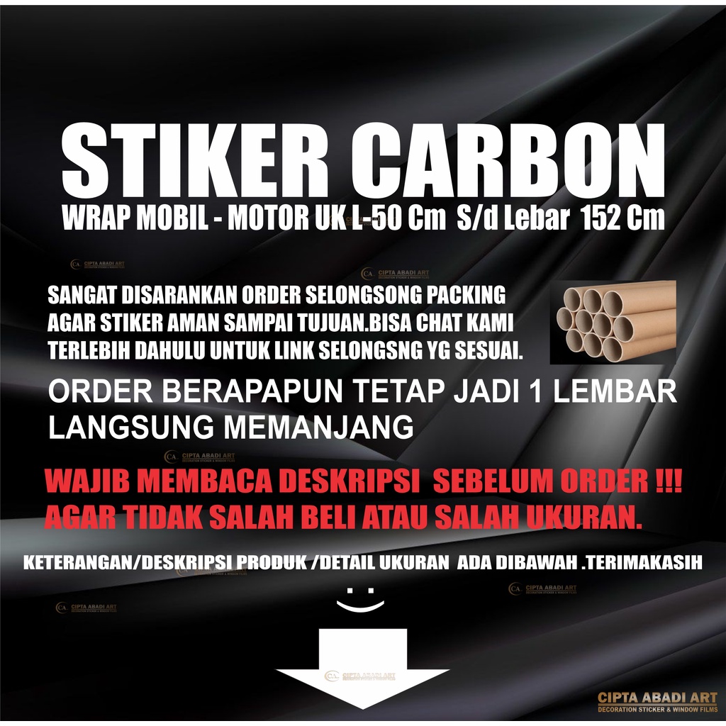 Stiker Carbon Skotlet Karbon 6D Motor Mobil Ukuran L-152 Cm dan L-50 Cm