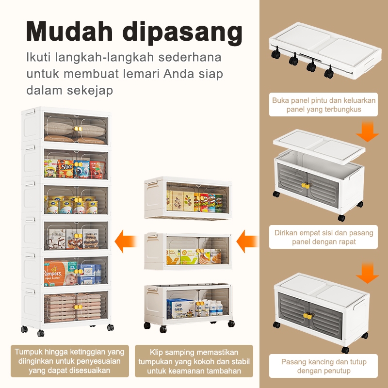 ATTICLIVING Lemari Plastik Lipat 2/3/4/5/6 Tingkat Lemari Pakaian Anak Lipat Serbaguna & Bayi, Rak Baju Multifungsi, Org