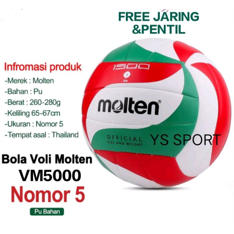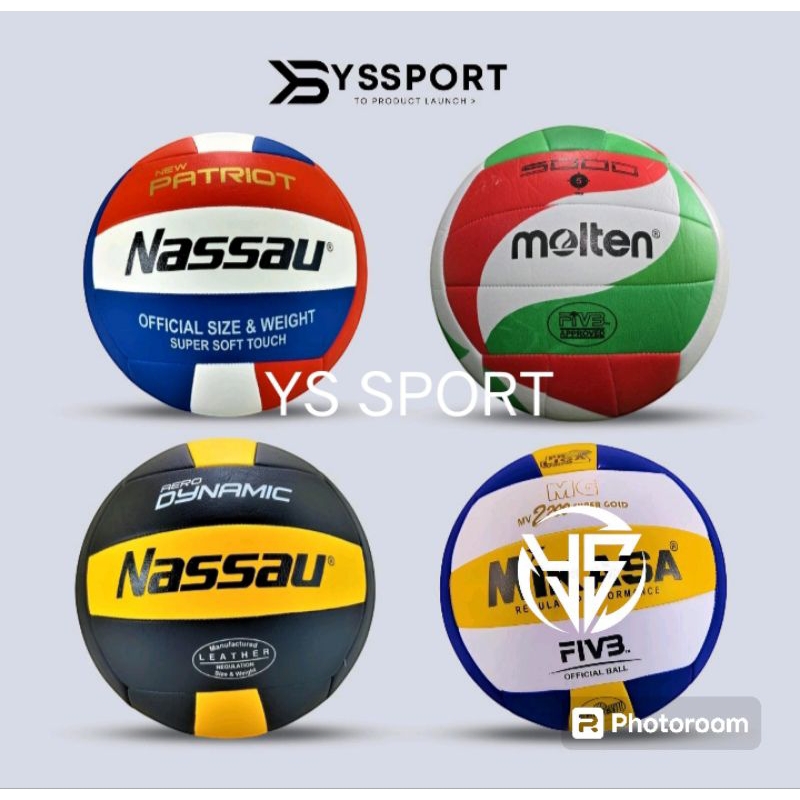 BOLA VOLI JAHIT NASSAU SOFT TOUCH SIZE 5 ALL TYPE FREE JARING PENTIL +POMPA