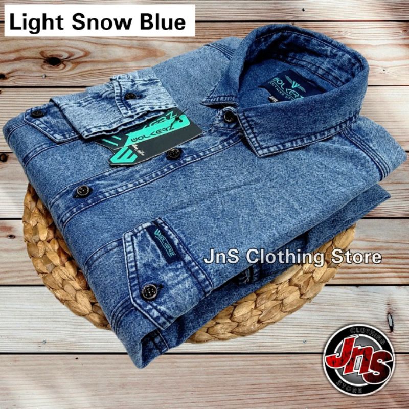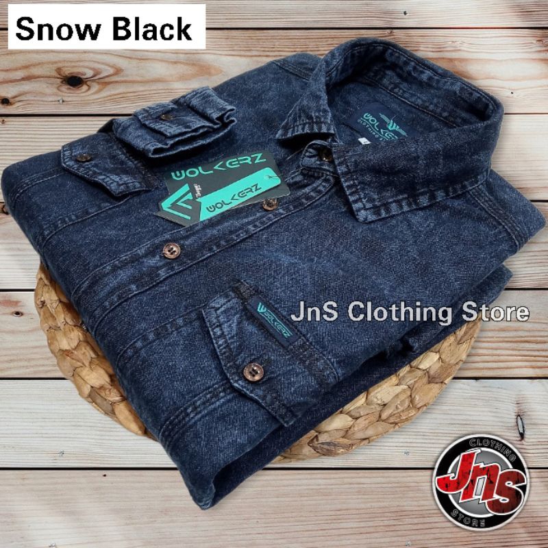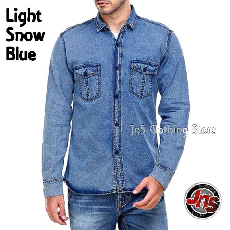 Baju Kemeja Hem Denim Jeans Pria Lengan PANJANG Premium Distro Casual Shirt Snow Atasan Polos - JnS