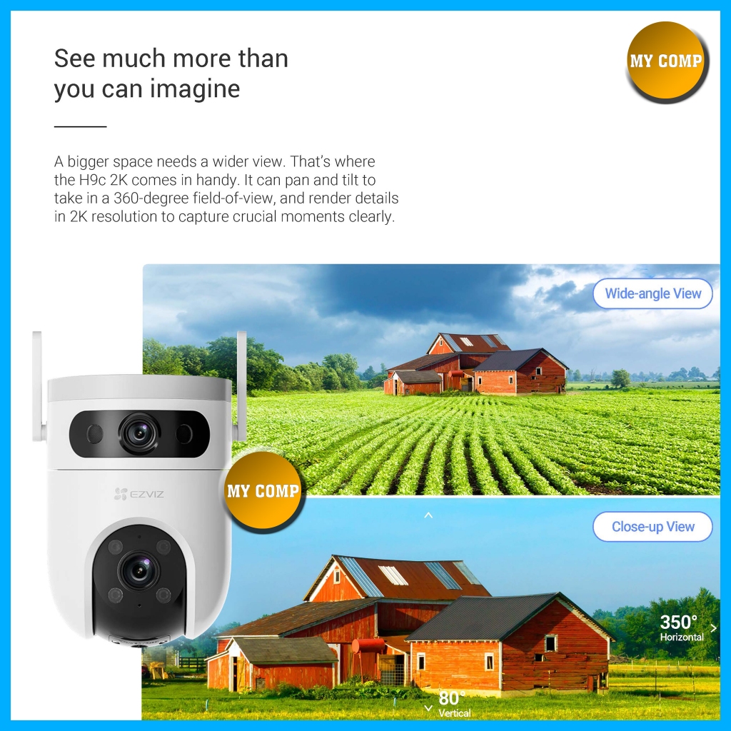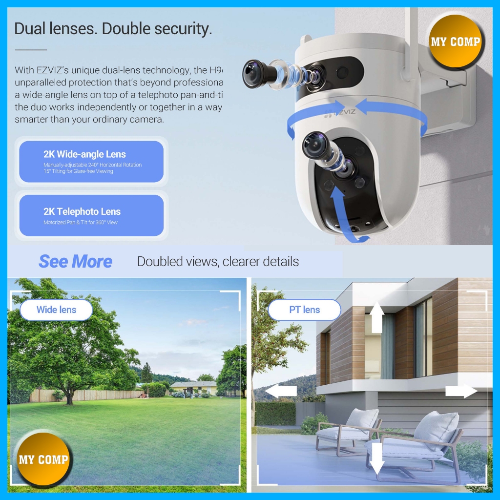 Ezviz H9C Dual Lens 5MP 3K & 3MP 2K Outdoor Pan Tilt Smart Home Wifi Wireless Camera