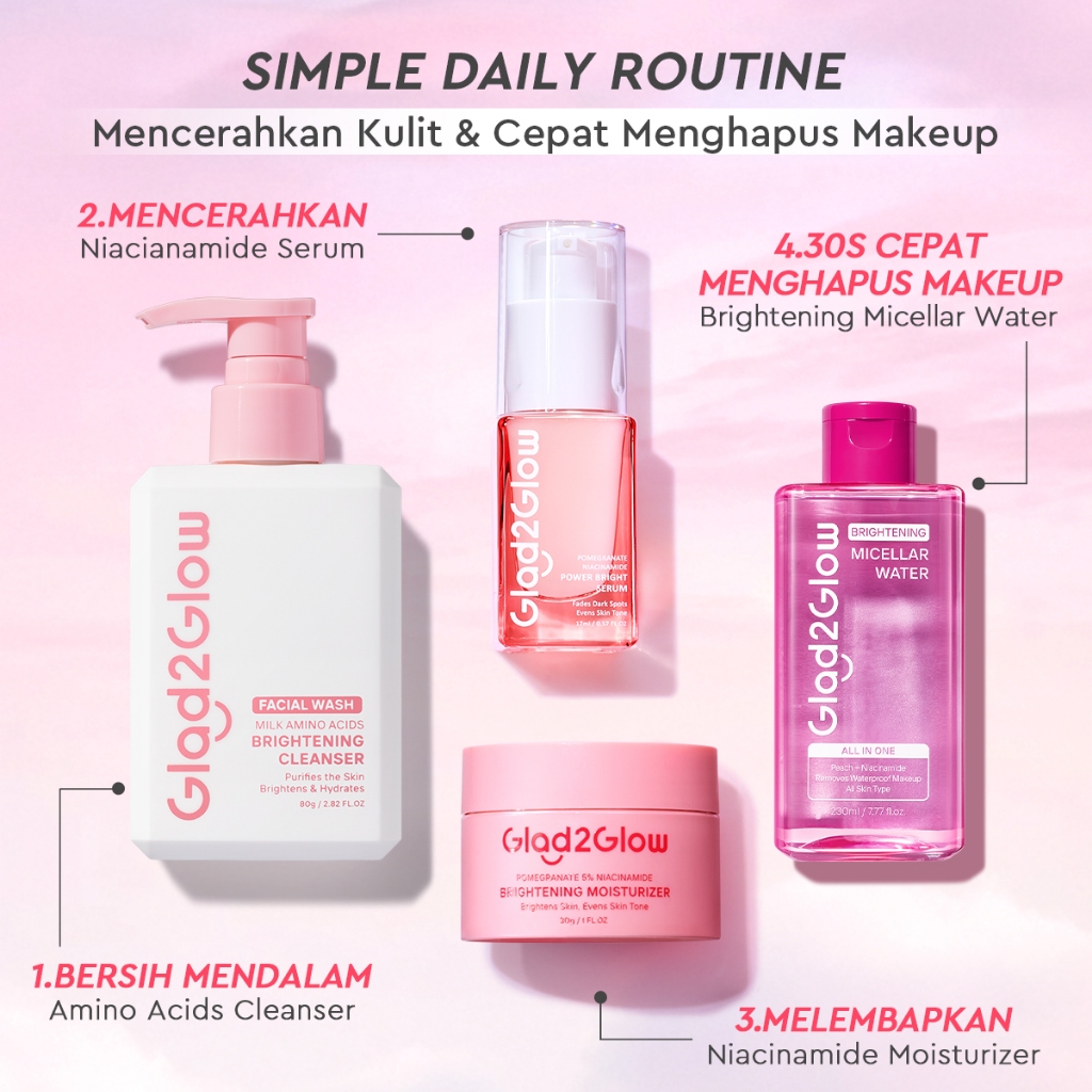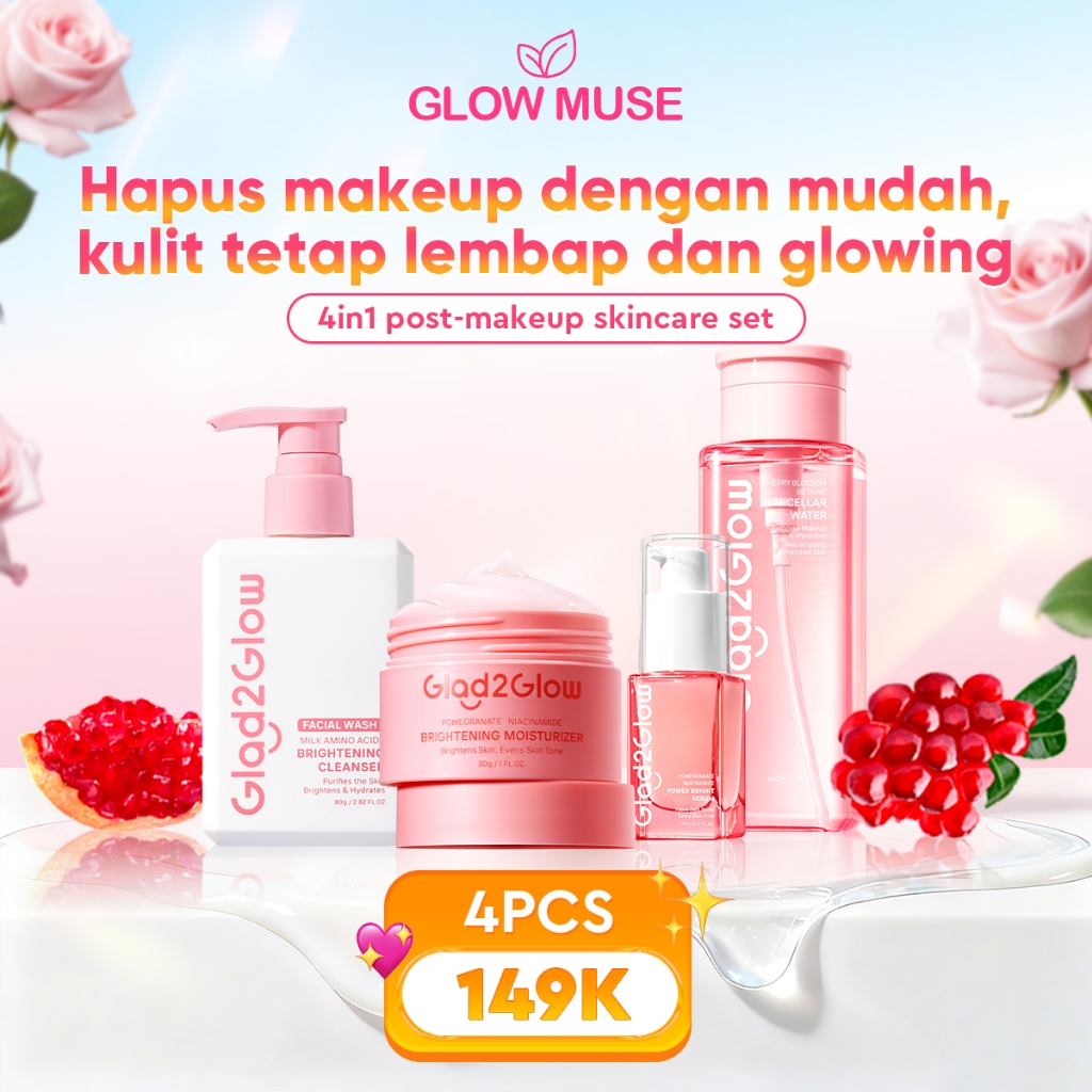 [Mall] Glad 2 glow Official Store cerah day & night glowing and makeup combo 4in1 skincare paket Niacinamide