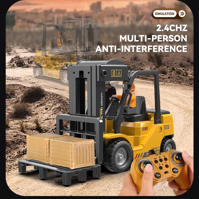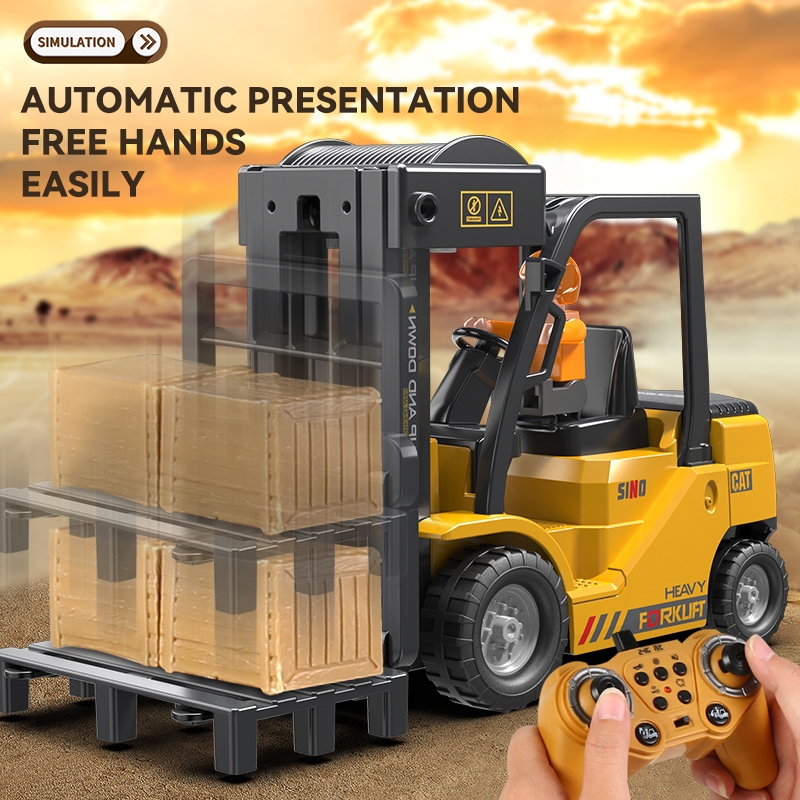 11CH Forklift Mainan Anak Remote Control Keluar Asap Suara & Lampu Simulasi RC Forklift