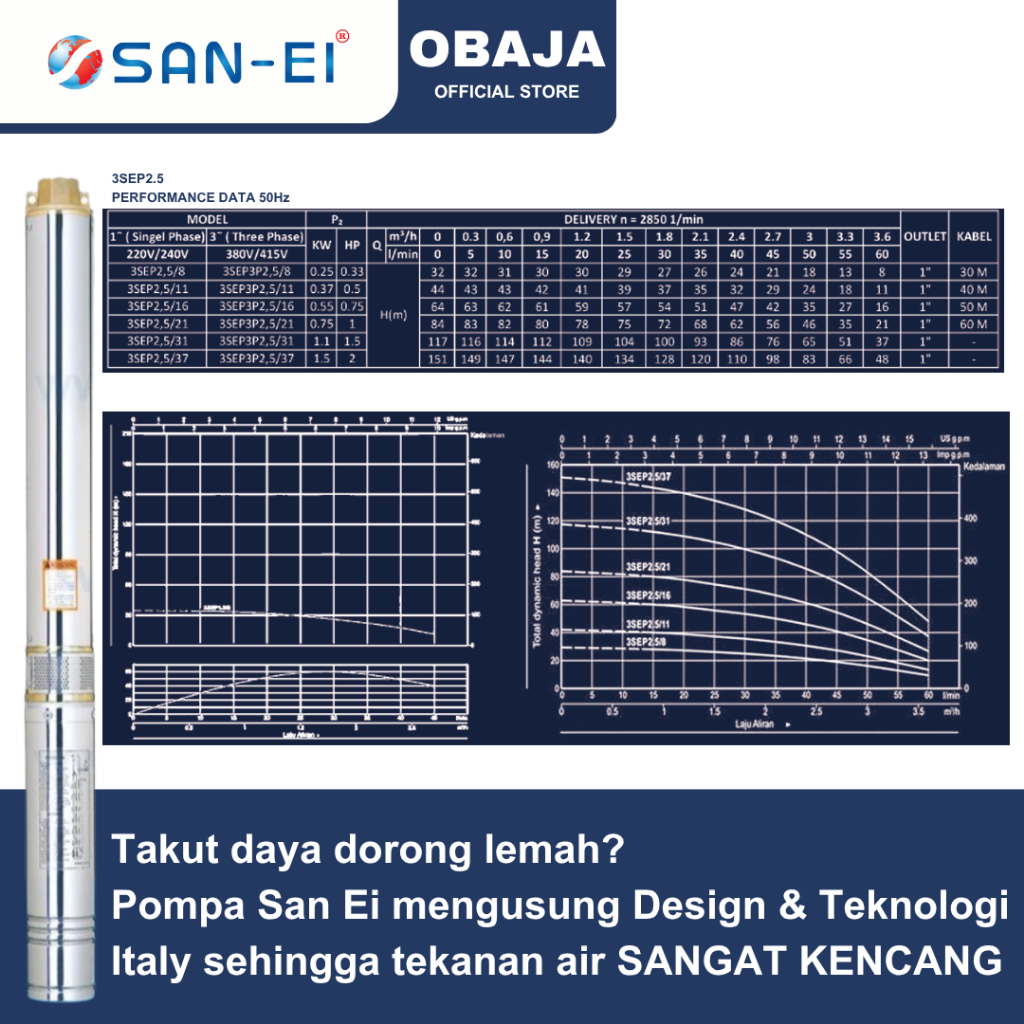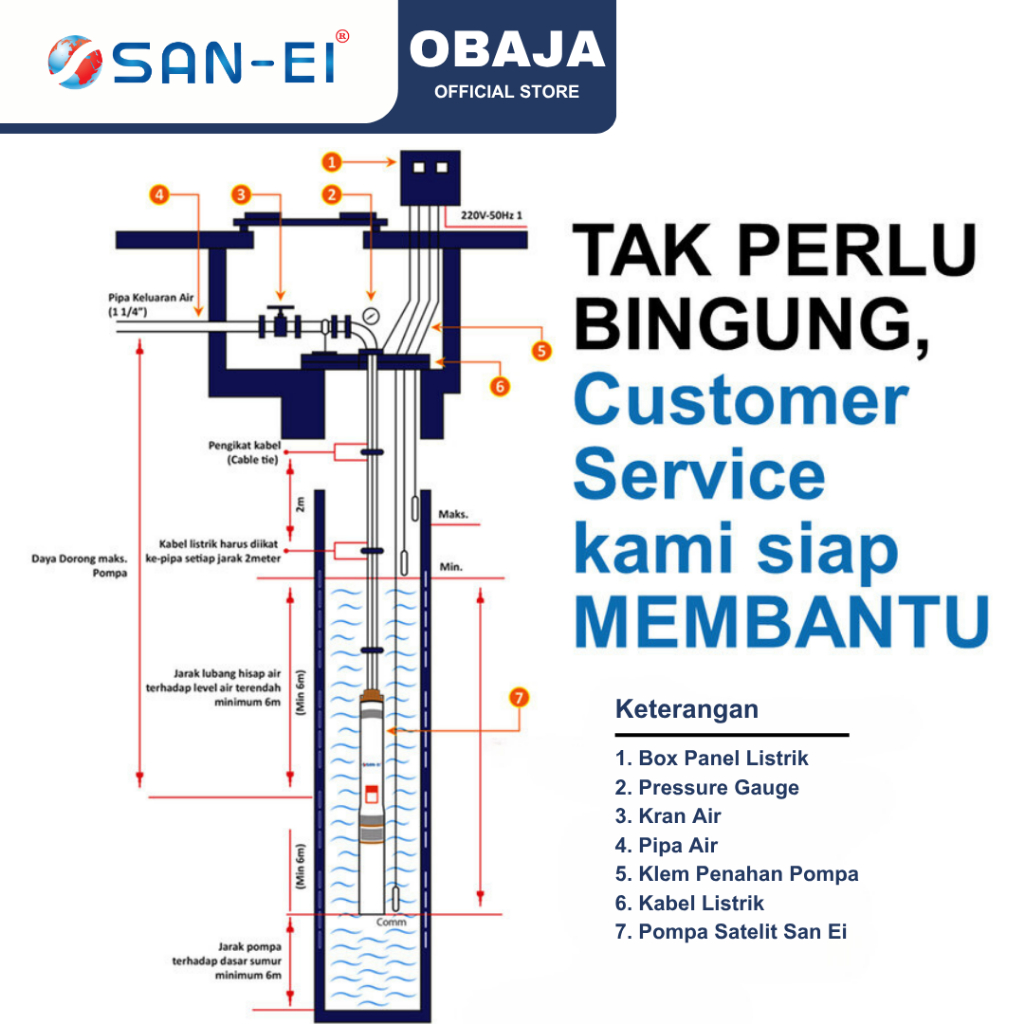 San Ei Pompa Satelit 3 inch 0.5 + Kabel 40 M Noril / Pompa Submersible 3" 0.5 + Kabel Impeller Plastik San Ei