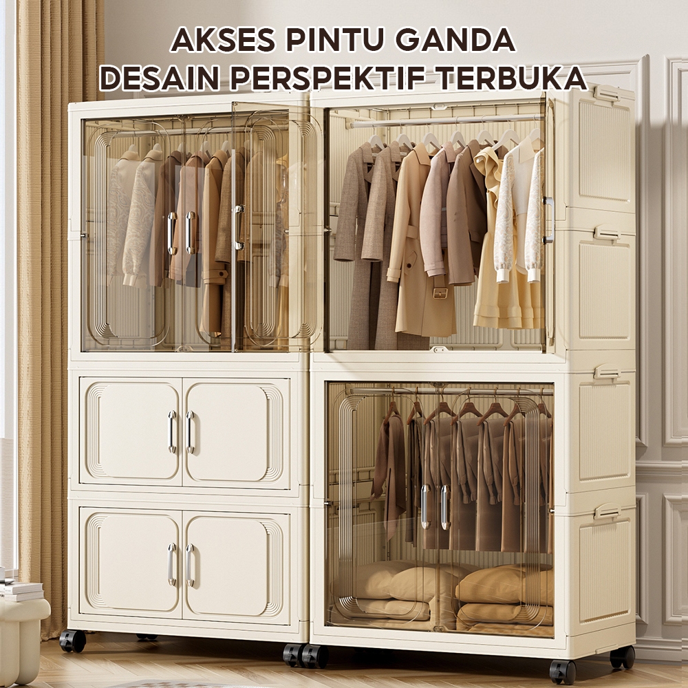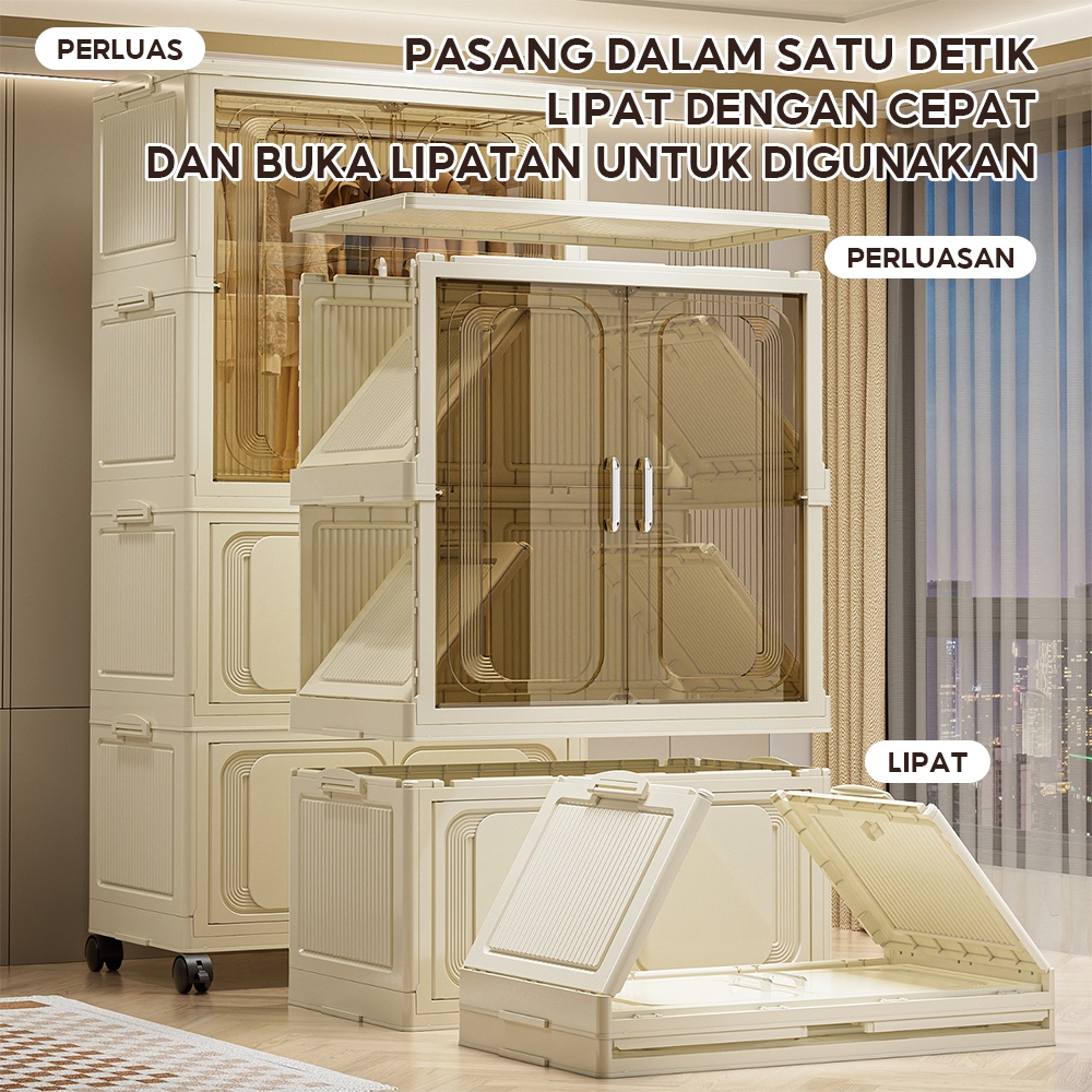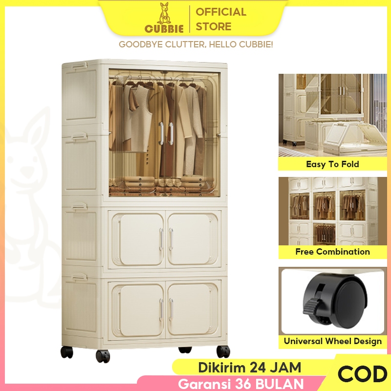 Cubbie Lemari Plastik Pakaian Dapat Dilipat 2/3 Tingkat Laci Susun Storage Cabinet Plastik Rak Susun Penyimpanan Lemari