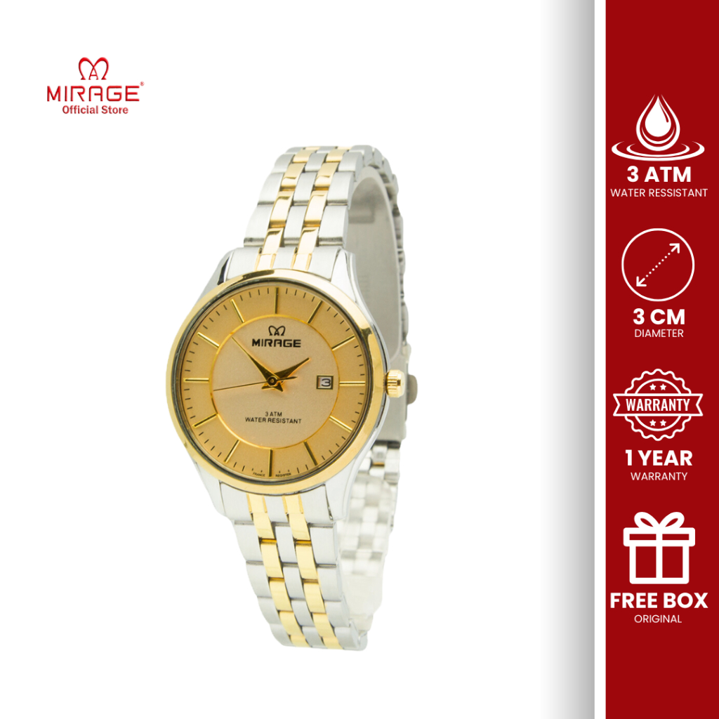 Mirage Jam Tangan Wanita Analog Kasual Kombi Silver Goll Mirage 8544 / 8882 L Anti Karat Garansi 1 Tahun