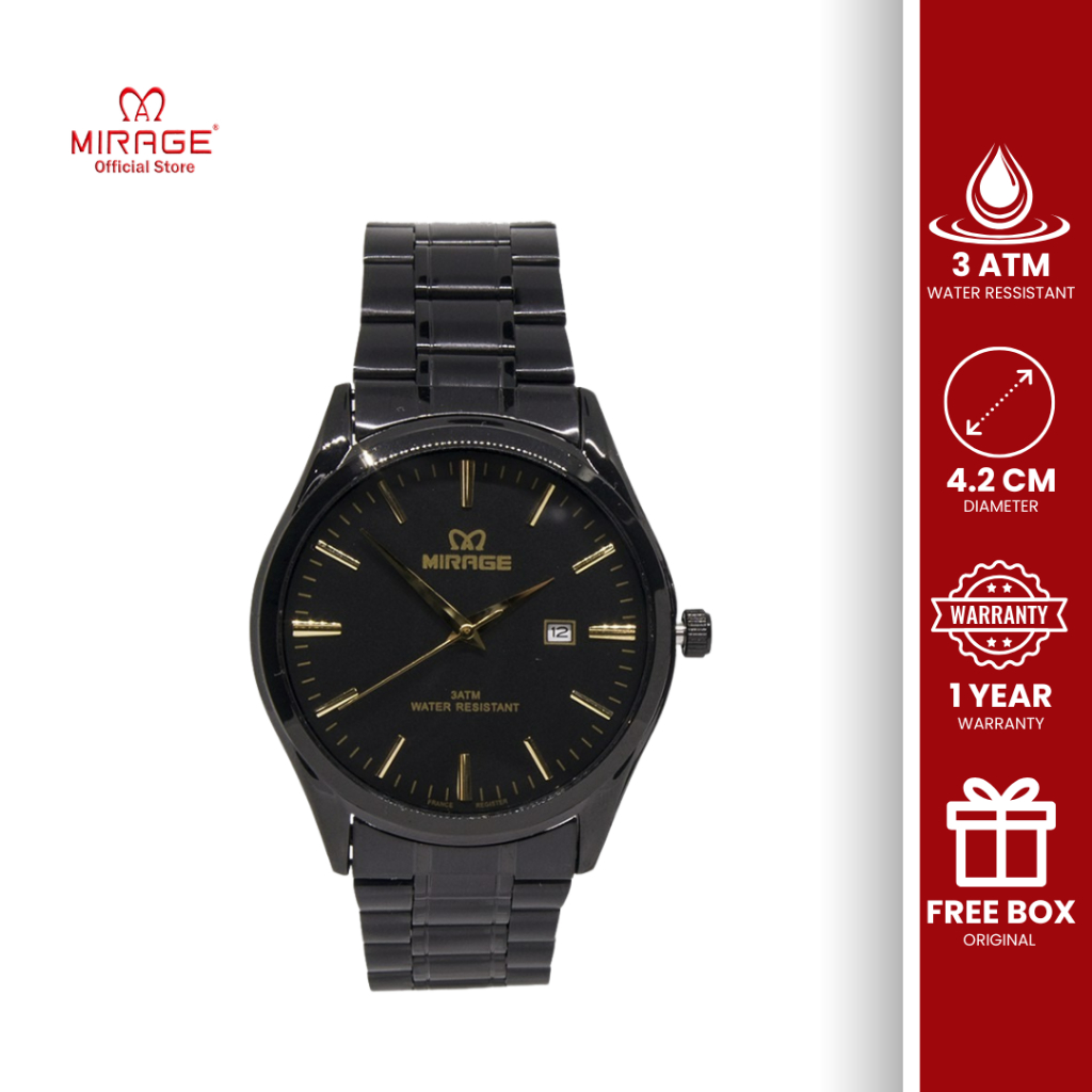 Mirage Analog Jam Tangan Couple Pasangan Original 8708 Hitam Kasual Formal Tanggal Aktif Tahan Air