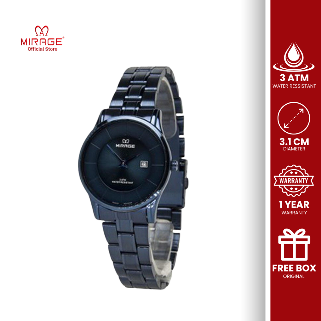 Mirage Original Jam Tangan Wanita Analog Kasual Biru Navy Stainless Tanggal Aktif 8670 L Anti Karat