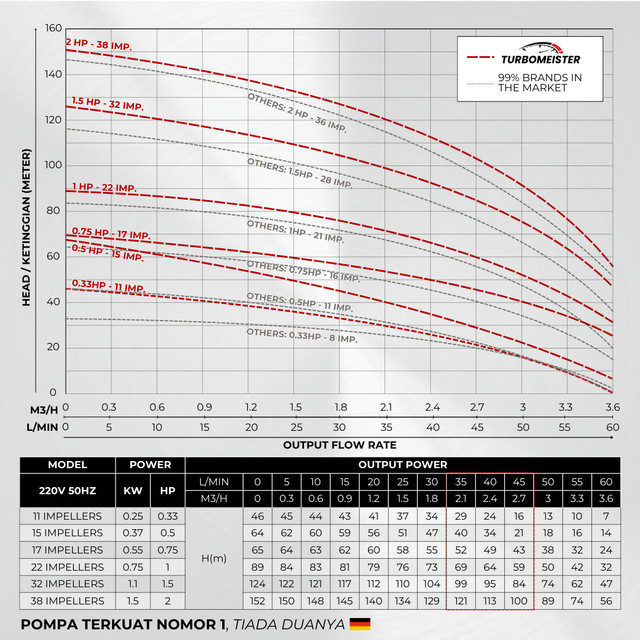 Pompa Satelit 3 Inch Turbomeister 0.25 + Kabel 30 Meter - Submersible / Sibel - Sumur Dalam 30 M