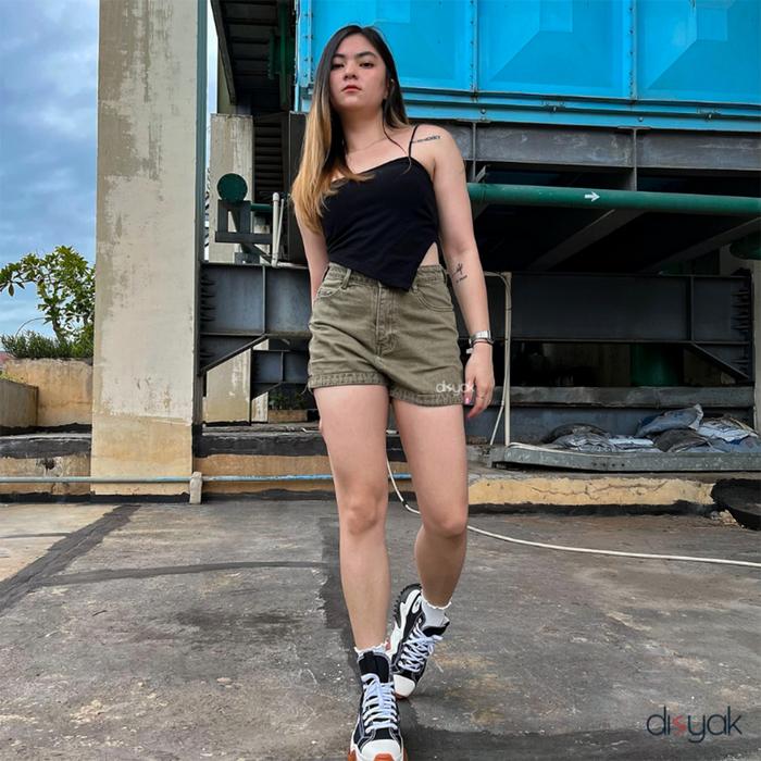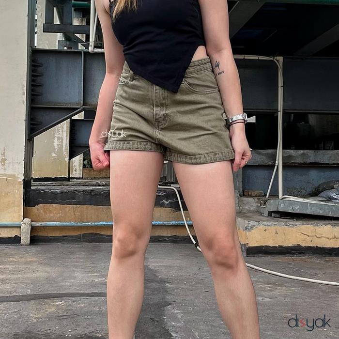 DISYAK - Hotpants Jeans Celana Pendek Wanita Non Stretch Lipat Kaki Army Brown 1053-2053 - Army Brown 31