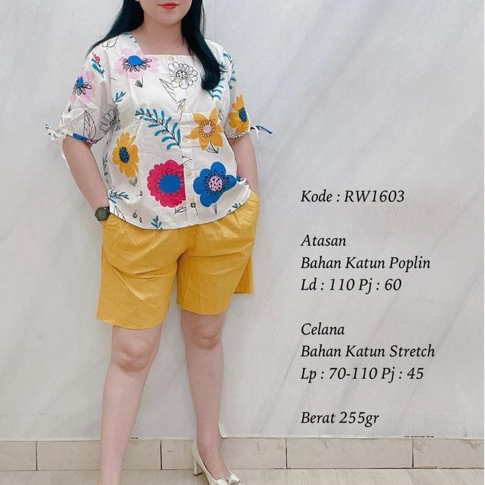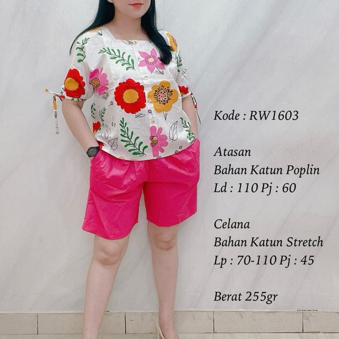 1603 SETELAN HOTPANTS FASHION WANITA - RW1603 Orange