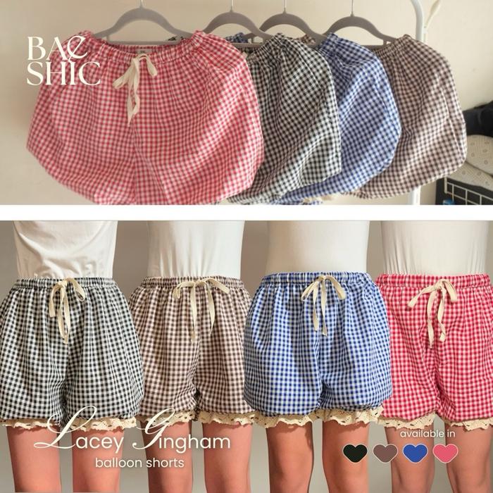 Baeshic Lacey Gingham Short | Celana Pendek | Celana Summer | Celana Boxer - Brown