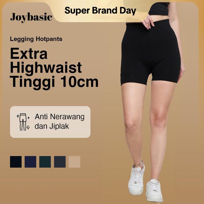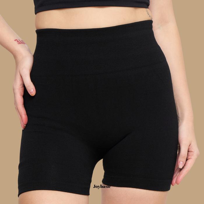 Joybasic Legging Hotpants Highwaist Dalam Fleece Anti Nerawang - Black Standar