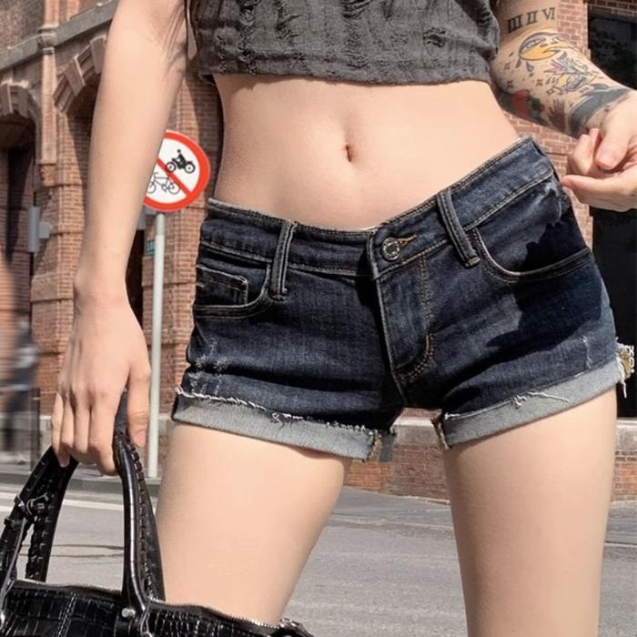 American Style Low Waist Sexy Mini Jeans Celana Denim Pendek Seksi Jeans Berpotongan Rendah - Biru S