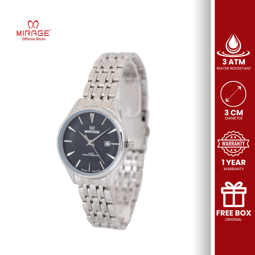 Mirage Watch Original Jam Tangan Analog Wanita Silver Kasual Formal Anti Karat 8775 L Tanggal Aktif