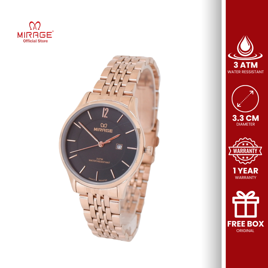 Mirage Jam Tangan Wanita Original Stainless RoseGoll Mewah Formal 8647 / 8890 L Analog Anti Air