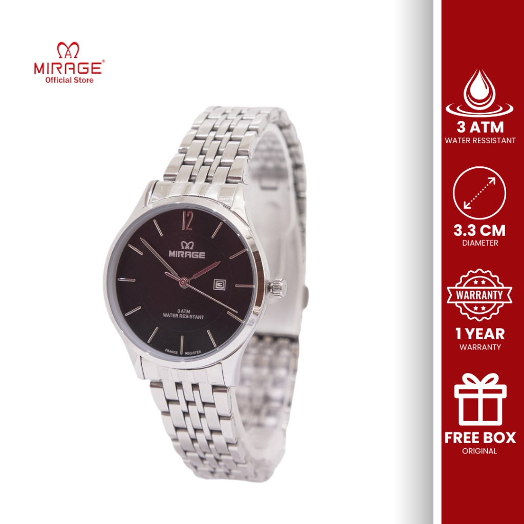 Mirage Original Jam Tangan Wanita Analog 8647 / 8890 L Silver Kasual Klasik Anti Air Garansi 1 Tahun