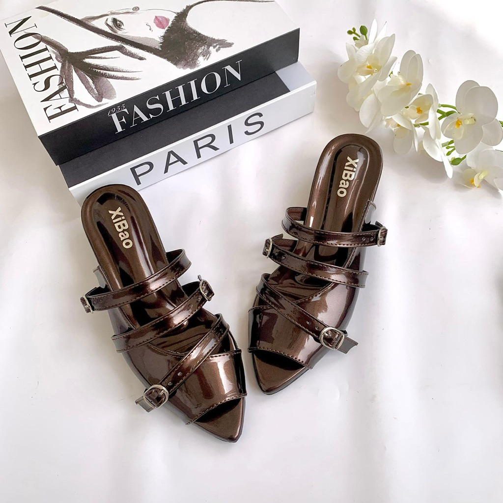 Sandal Wanita Mules Elegant Simple Hak 3 Cm Terbaru 2025