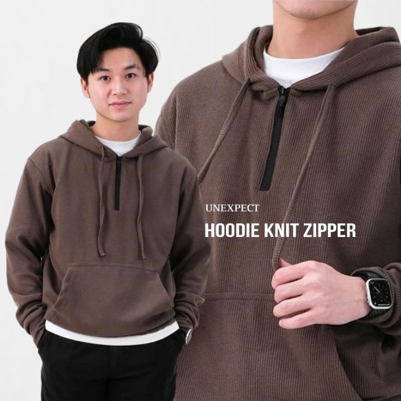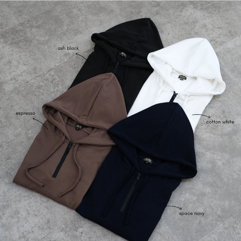 SVN CLUB - Hoodie Jacket Halfzip Knit Kai Sanvanina | Jaket Pria Rajut Panjang | Outer Jaket Knit Sweater Half Zip