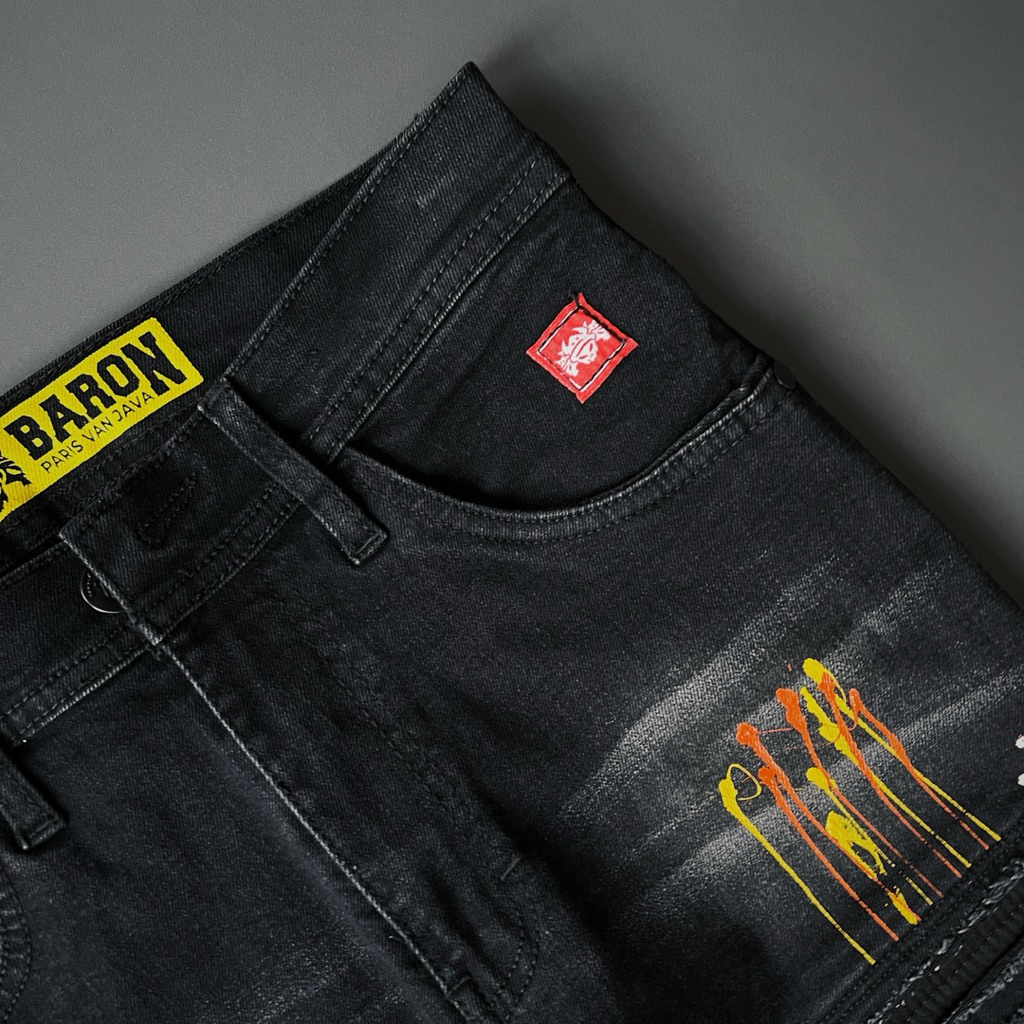 Celana Jeans Panjang Pria Ripped Bercak Cat Terbaru Slimfit Stretch