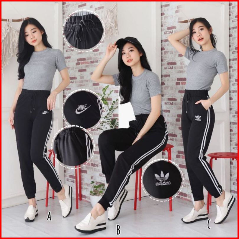 Celana Jogger Import Lis 2 Putih Bordir Brand Celana Training Wanita Import Fit To 75kg