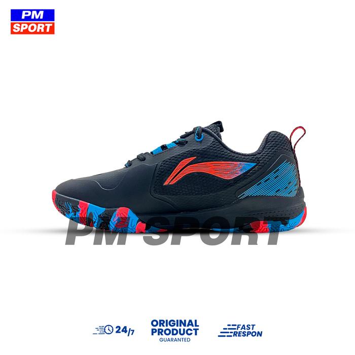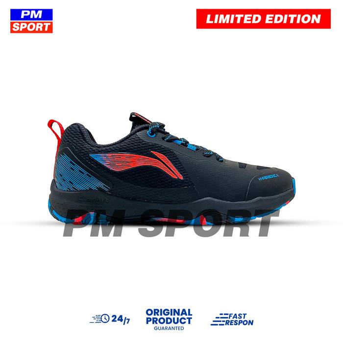 SEPATU BADMINTON LINING HYPERSONIC II BULUTANGKIS HYPERSONIC 2 LIMITED EDITION NEW COLOUR + SPESIAL BOX HITAM ORIGINAL - BLACK/ORANGE/BLUE, 43