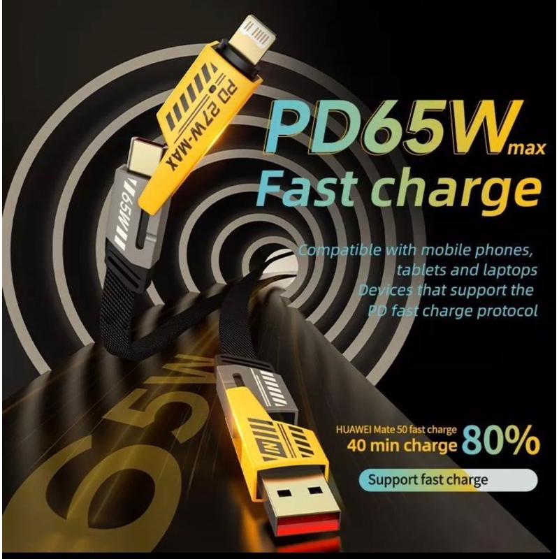 Kabel data 4in1 65W 5A Convertible Metal Fast Data Cable, Braided Cable for (USB A - USB C , USB A - LIGHTNING , USB C -