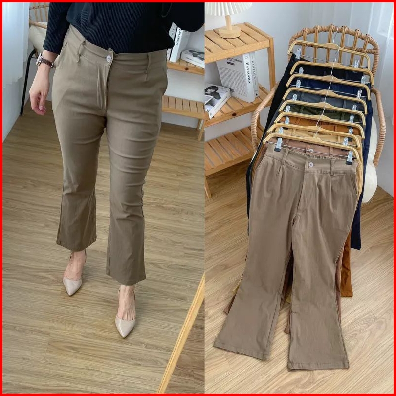 Celana Basic Cutbray Pants Sleting Wanita Katun Premium
