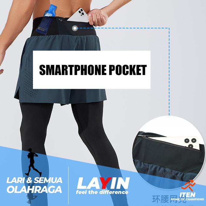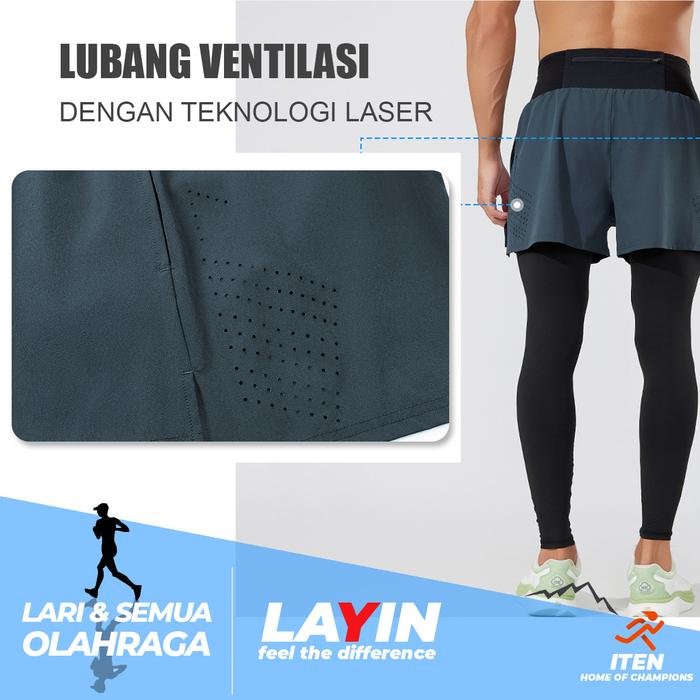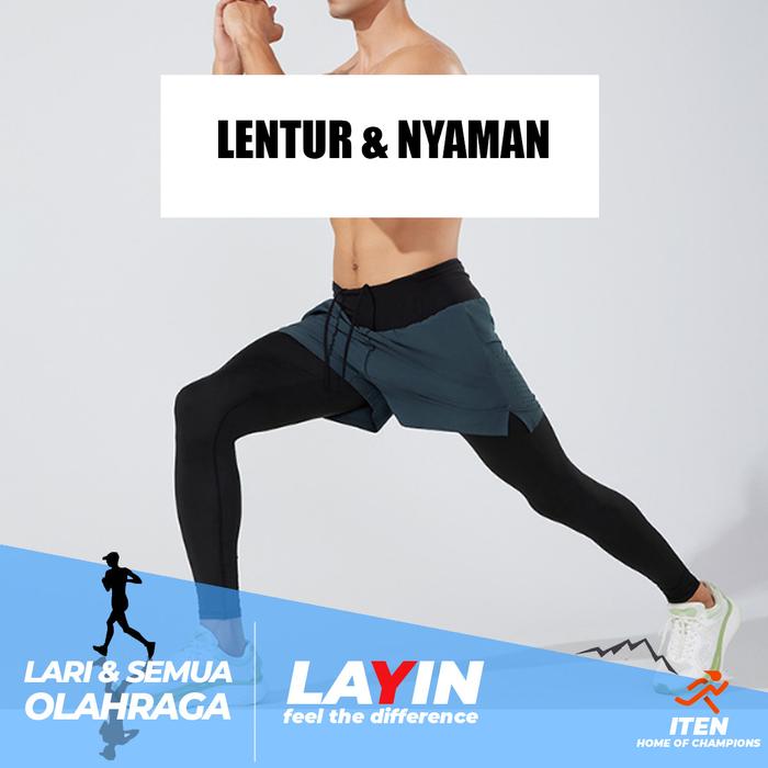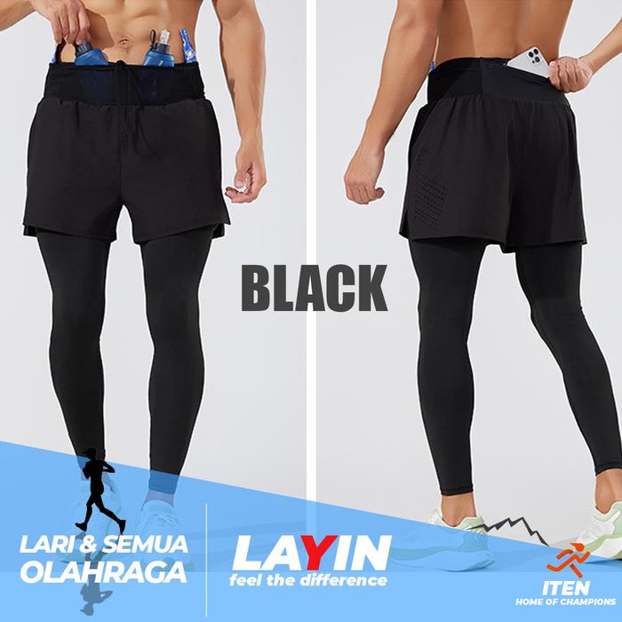 LAYIN ALPHA 2 IN 1 CELANA LARI KETAT TEKNOLOGI LASER 3D SEMUA OLAHRAGA PRIA LARI RUNNING GYM FUTSAL BADMINTON SEPEDA YOGA - HITAM, S