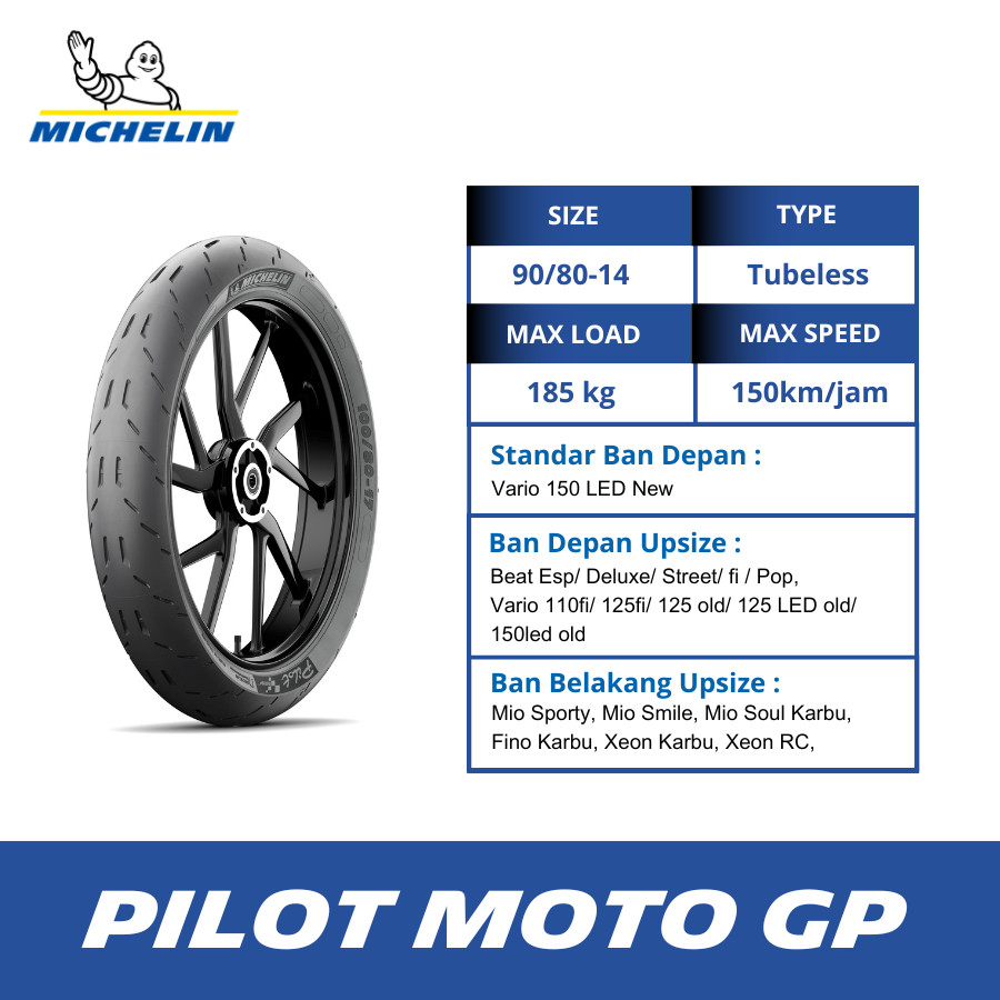 Michelin Ban Motor Matic Mio, Vario, Beat Pilot Moto GP - ukuran 90-80 R14 Tubeles