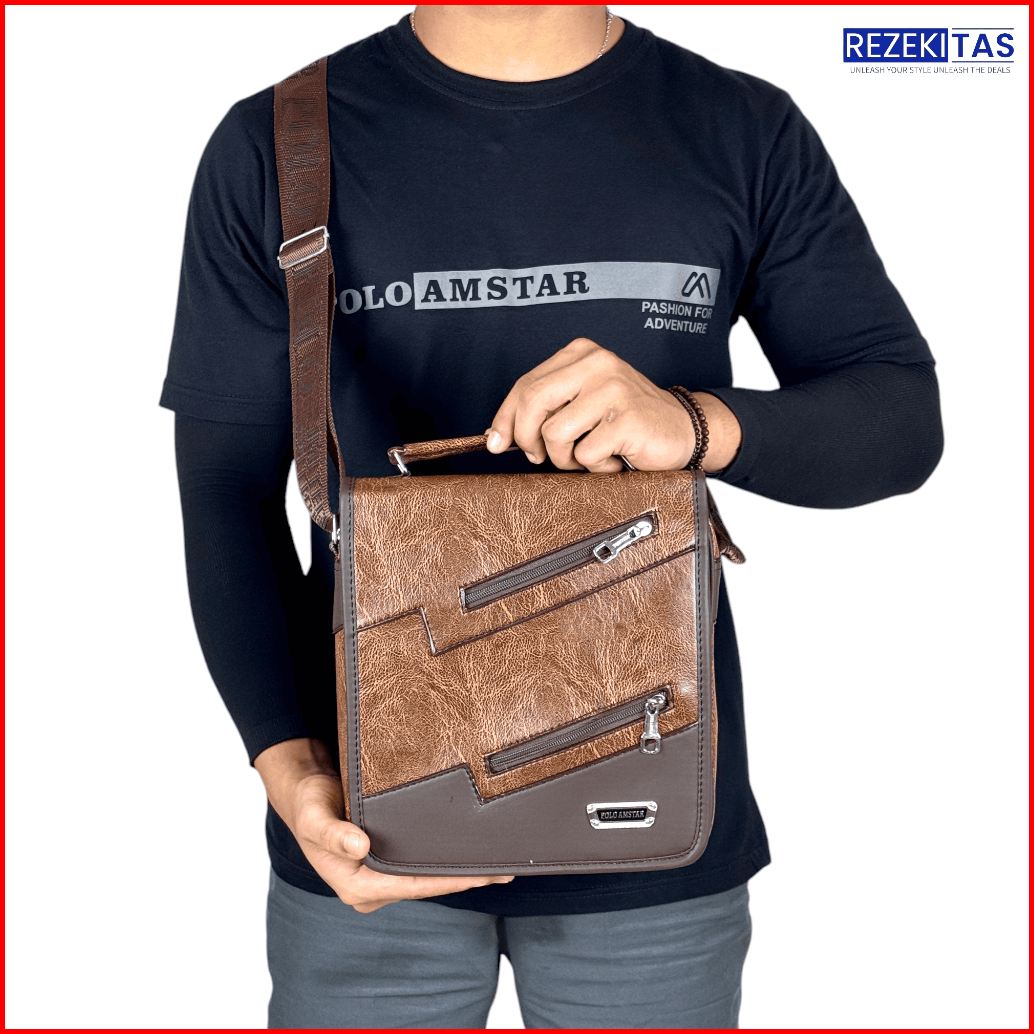 Tas Pria Tas Selempang Kulit Pu Leather 10 Inchi Original Polo Amstar