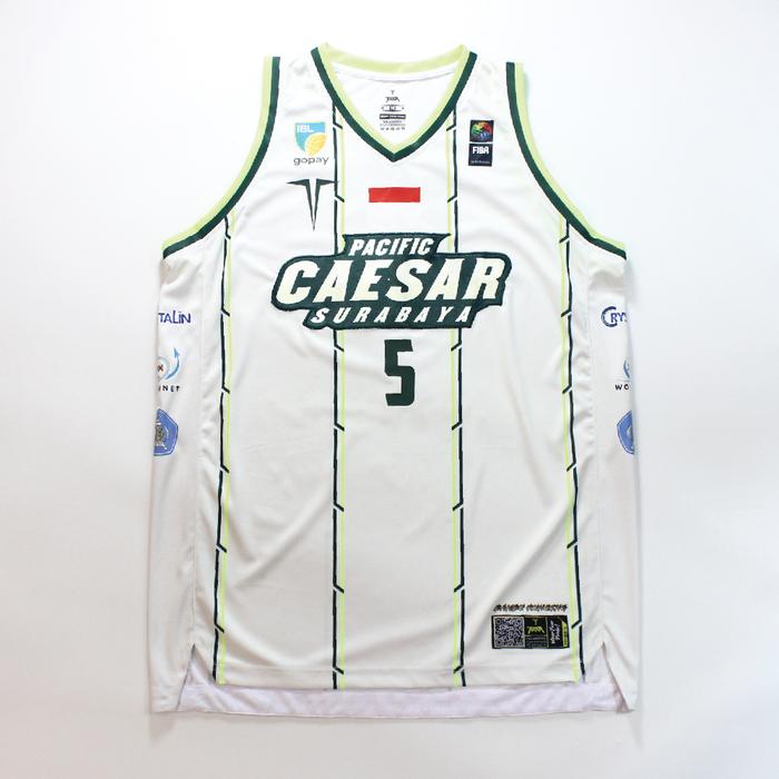 JERSEY BASKET ATASAN PACIFIC CAESAR SURABAYA IBL 2025 AUTHENTIC AWAY PUTIH CREAM - S, POLOS