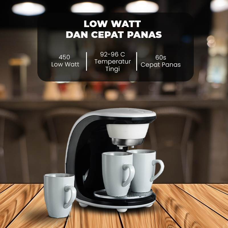DoraHomi Coffee maker mesin pembuat kopi otomatis low watt 2 cangkir