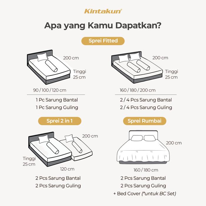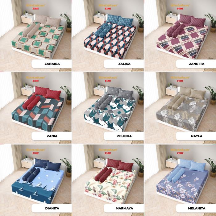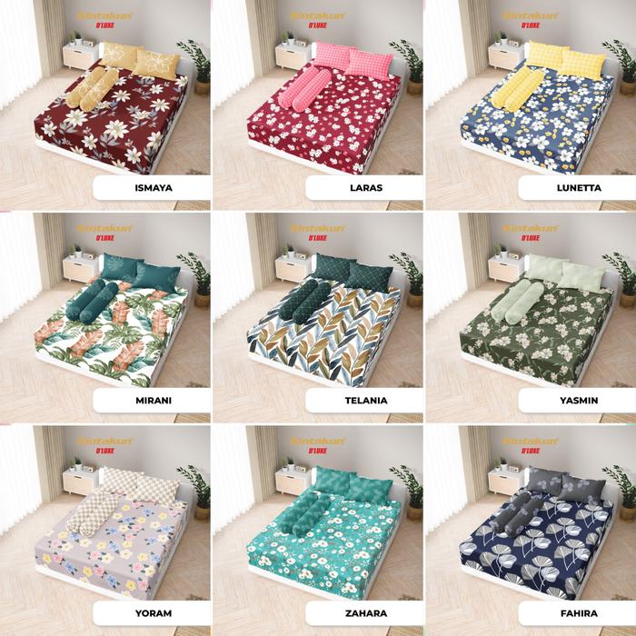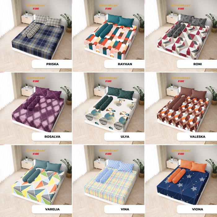 Kintakun Dluxe Sprei Tinggi 25 Cm Double Karet Anti Geser Ukuran 90 / 100 / 120 / 160 / 200 Set Sarung Bantal Dan Guling