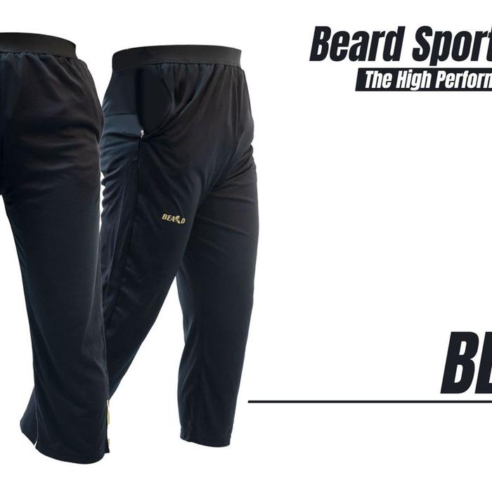 SPORT PANTS SYAR'I BEARD QUICK DRY CELANA JOGGING RUNNING POLYESTER - HITAM, S