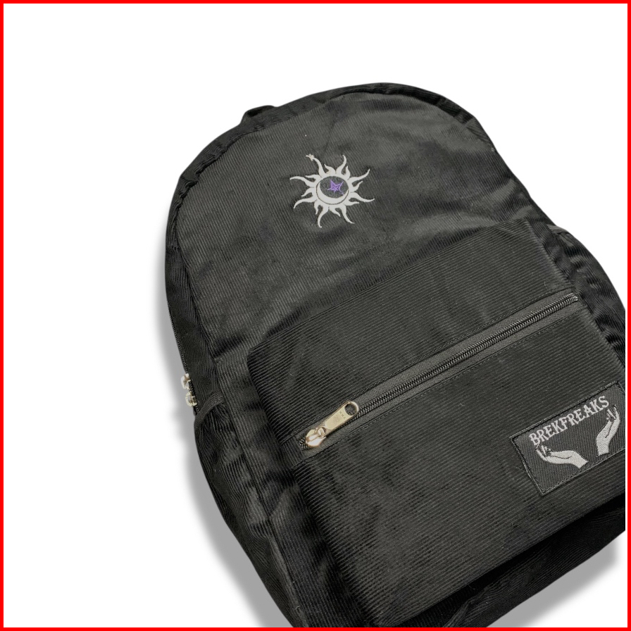Ransel Coduroy Premium Black Bordir Satin Waterproof