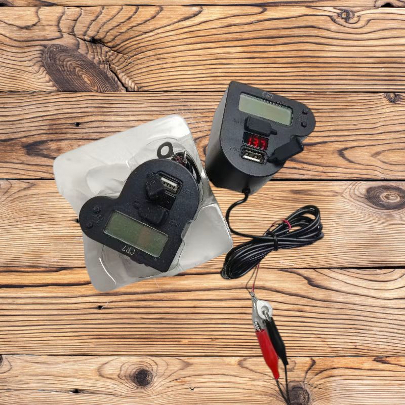 FLASH SALE VOLTMETER JAM 3IN1 DIGITAL PLUS DOUBLE USB WATERPROOF BREKET STANG UNIVERSAL