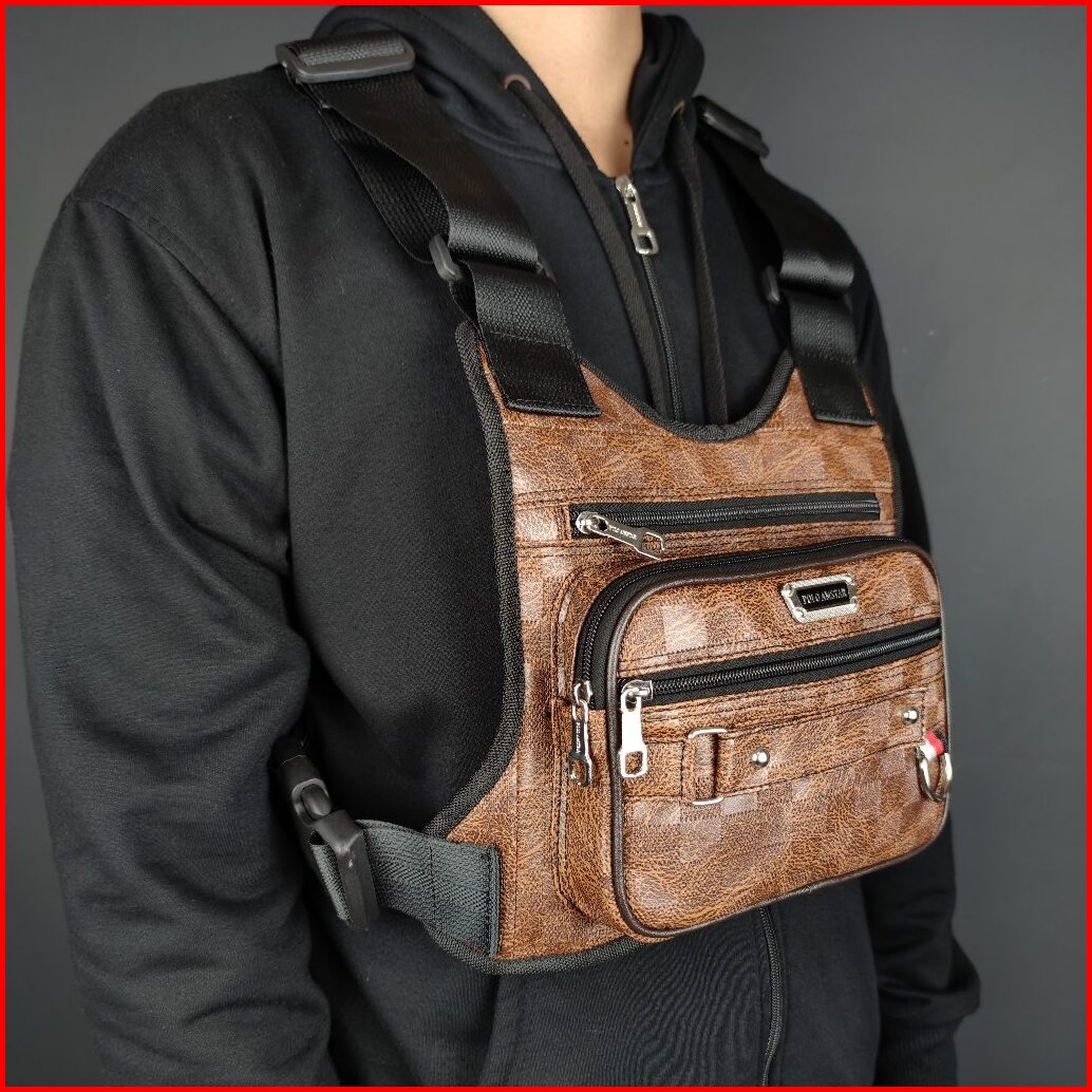 Tas Dada Polo Amstar Bahan Kulit Pu Motif Chest Bag Tas Selempang Bahu Tas Rompi